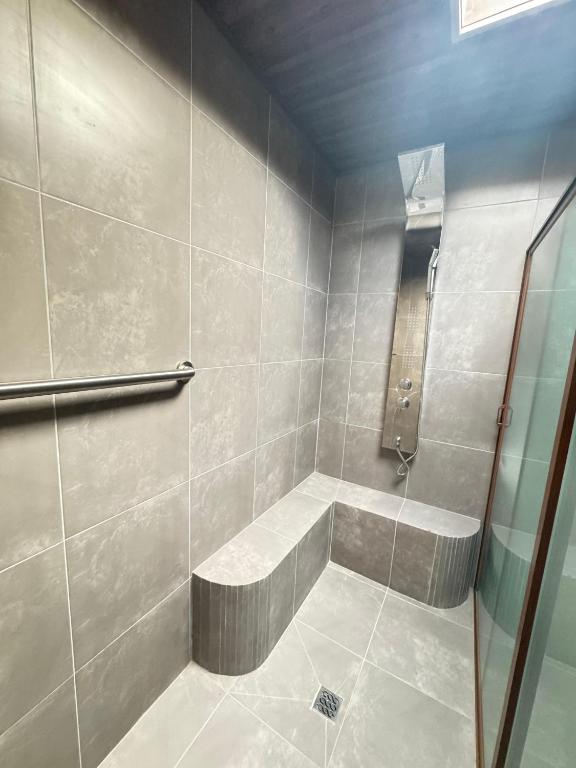 Shower, Toilet, Bathtub or shower, Towels, Toilet paper, Walk-in shower, Shampoo