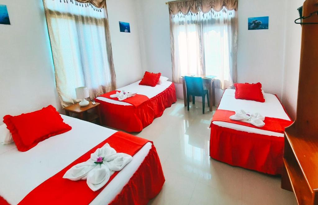 Available room categories at Cielo Azul Galápagos Hotel include Deluxe Double Room with Shower, Comfort Triple Room with Shower, Family Room with Bathroom and Standard Twin Room.